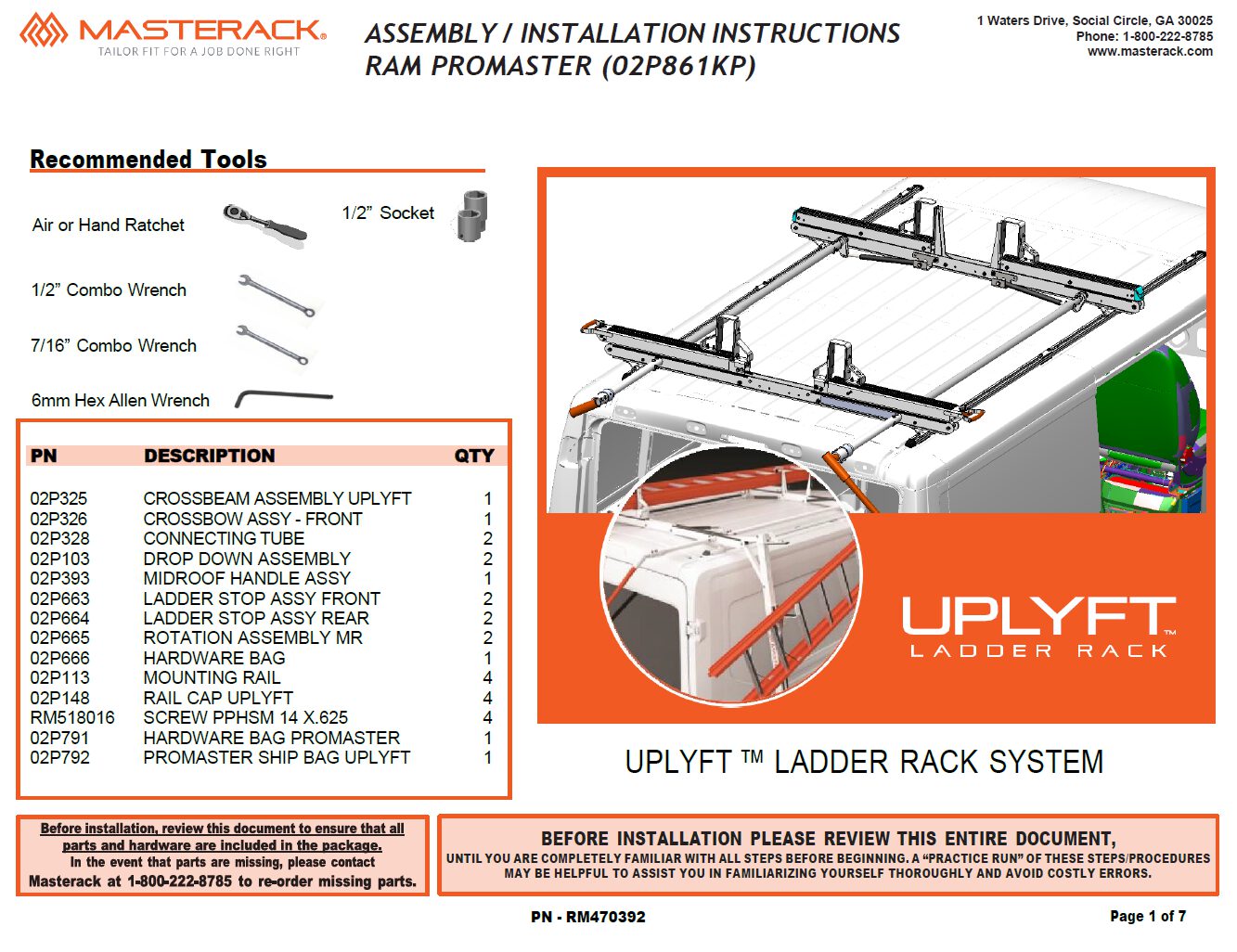 UPLYFT Ladder Rack, Double – RAM ProMaster, 136″ WBInstallation InstructionsPart #: 02P861KPDownload(1.66 MB)