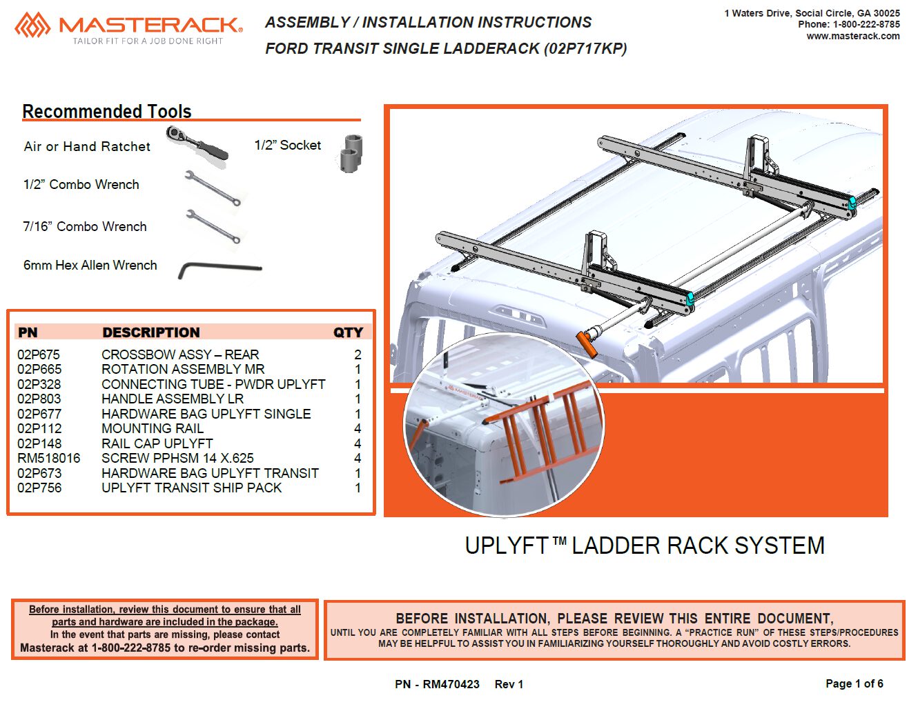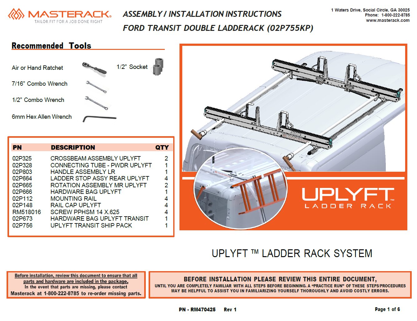 UPLYFT Ladder Rack, Single – Ford Transit Low Roof