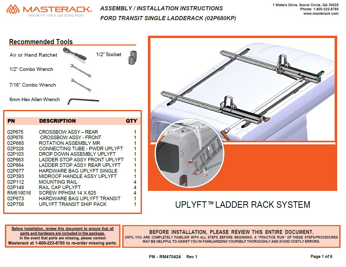 UPLYFT Ladder Rack, Single – Ford Transit Medium/High Roof