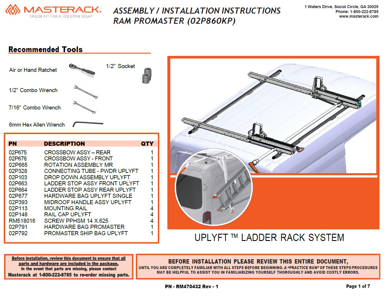 UPLYFT Ladder Rack, Single – RAM ProMaster, 136″ WB